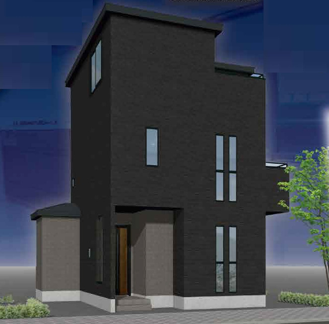【完成予想図】黒をベースとしたスタイリッシュな外観。主寝室には広々WIC付き!